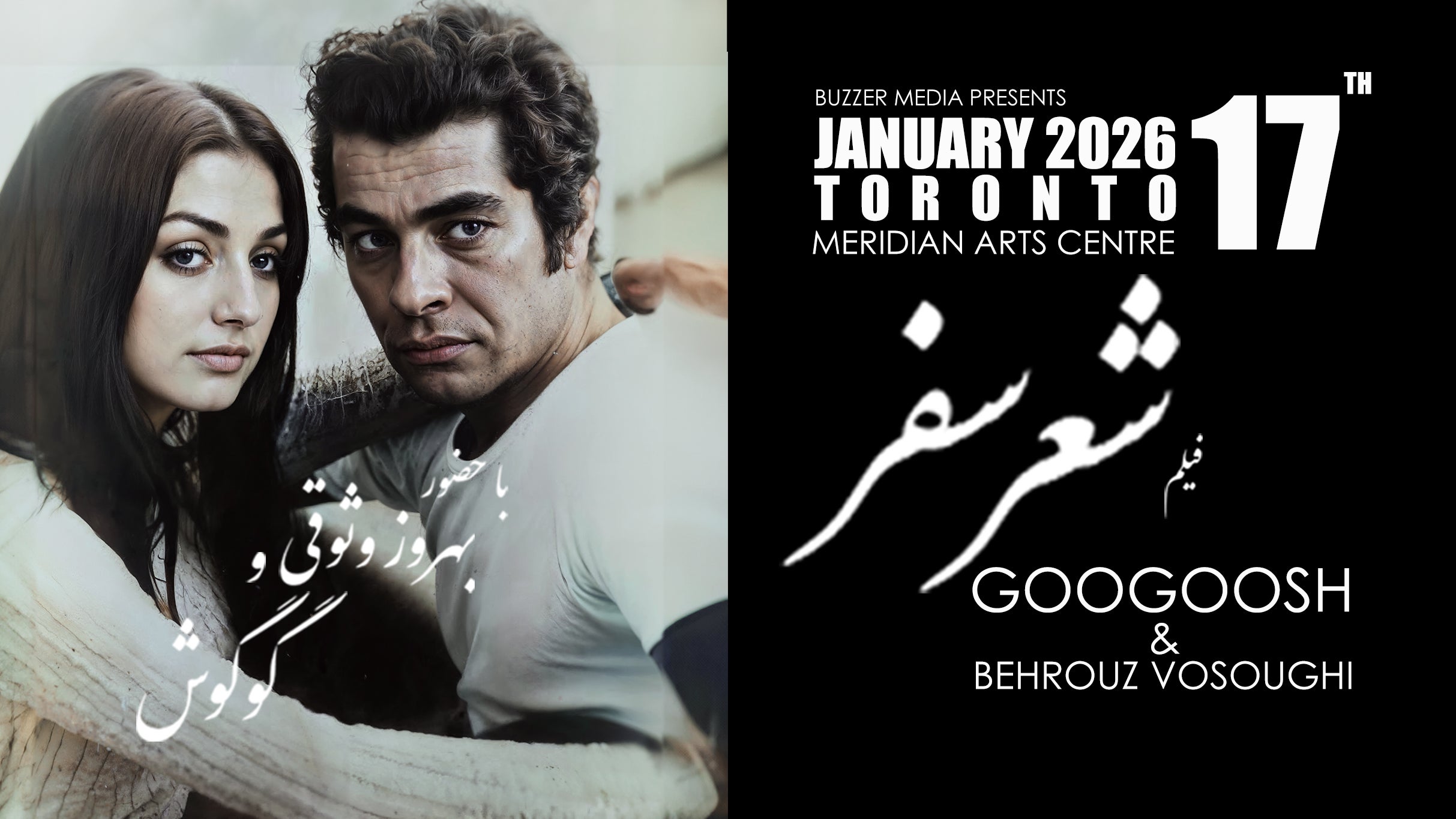 A landmark Iranian film from the 1970s, featuring Googoosh and Behrouz Vossoughitwo of Irans most celebrated pre-revolutionary cinema starsis now being shown in Toronto. The screening includes She?r-e Safar (The Poem of the Journey), which reunites these two legendary performers while offering exclusive behind-the-scenes footage, personal recollections from their production on Hamsafar, and reflections on their artistic careers and earlier works. Directed by Raha Etemadi, the event will feature both Googoosh and Behrouz Vossoughi in attendance and conclude with a question-and-answer session for the audience.